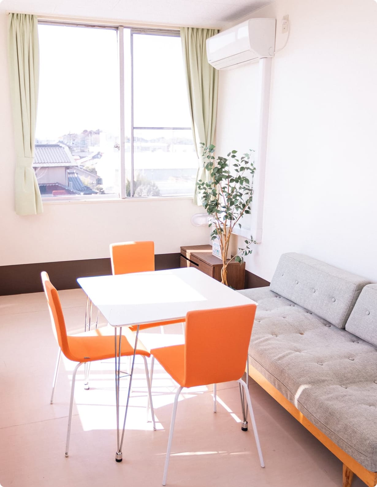 短期間の宿泊サービスです。宿泊中、食事や入浴、機能訓練などの介護サービスを提供します。ご家族の介護負担軽減のためにも利用できます。