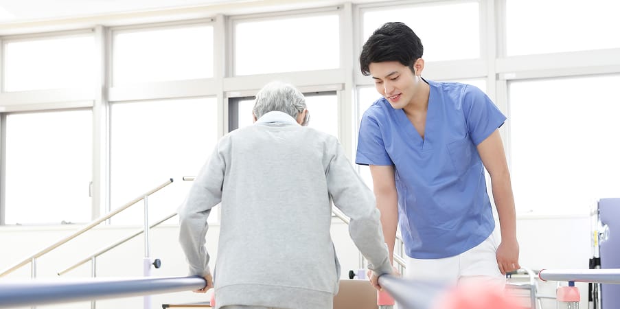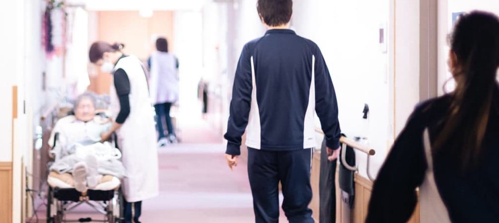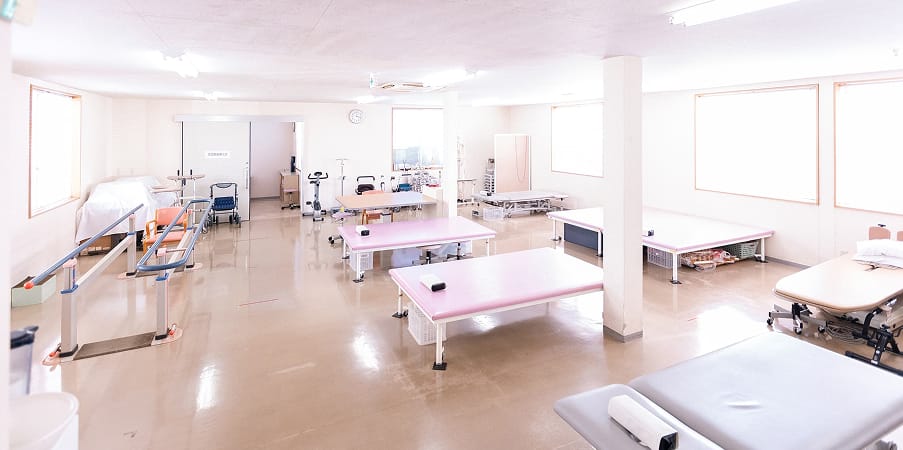 病院と自宅の中間に位置づけられる施設です。病院での治療を終えた高齢者の方々に、在宅復帰を目的としたリハビリ等を提供します。リハビリ職や介護職など様々な職種の方が連携し、利用者の在宅復帰を支援しています。