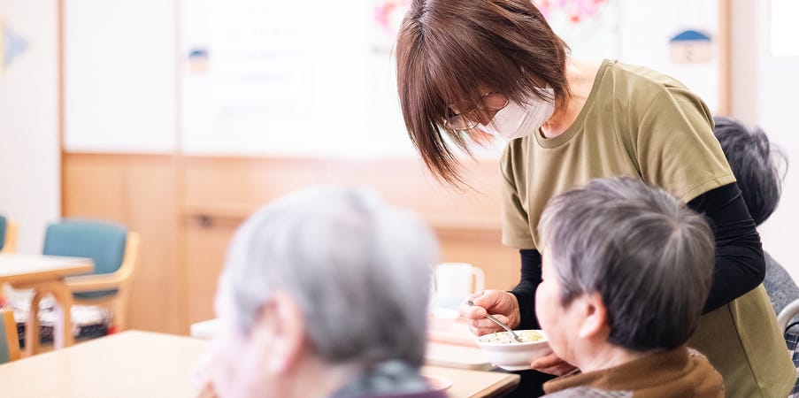 常に介護が必要で、自宅での生活が困難になった高齢者のための入居施設です。入居者さまが長期的に安定した生活を送れるよう、24時間体制で食事・入浴・排泄などの日常生活全般のサポートをおこなっています。地域の終の棲家として、なくてはならない施設です。