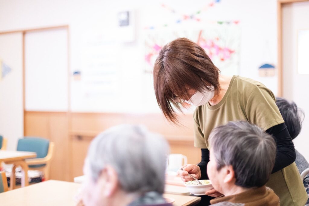 食事の配膳や介助を行いながら、利用者様との会話も楽しみます。
