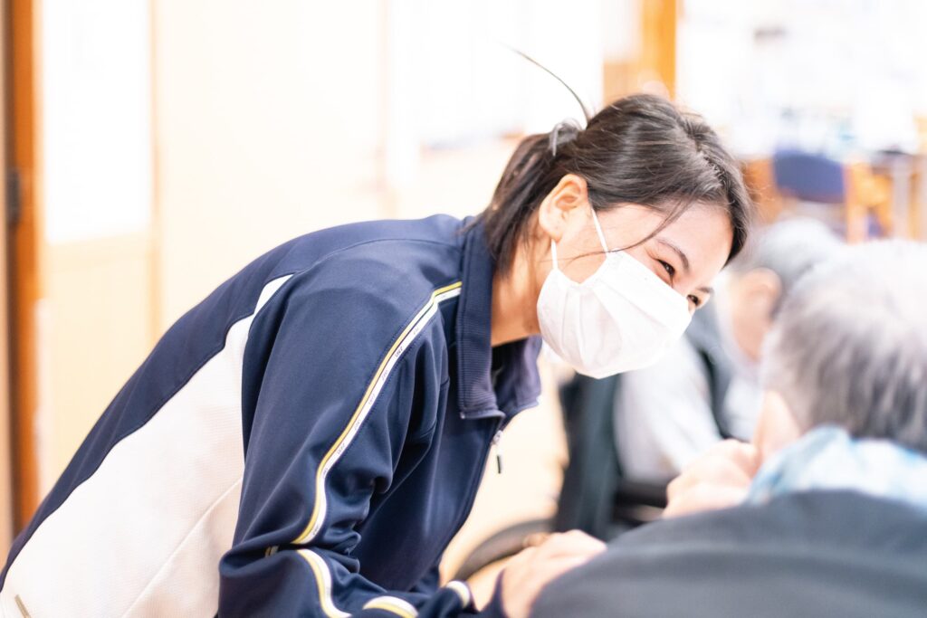 あなたにお願いするお仕事は、施設を利用される高齢者さまの「日常生活の介助」です。具体的には、食事や入浴、排せつなどのお手伝いをしていただきます。